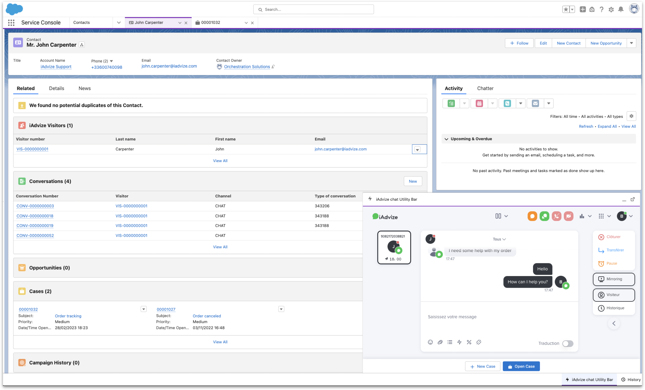 * Synchronize the iAdvize Conversation Transcripts with Salesforce Service Cloud. ​​- Synchronize the files shared during conversations you have with your website visitors