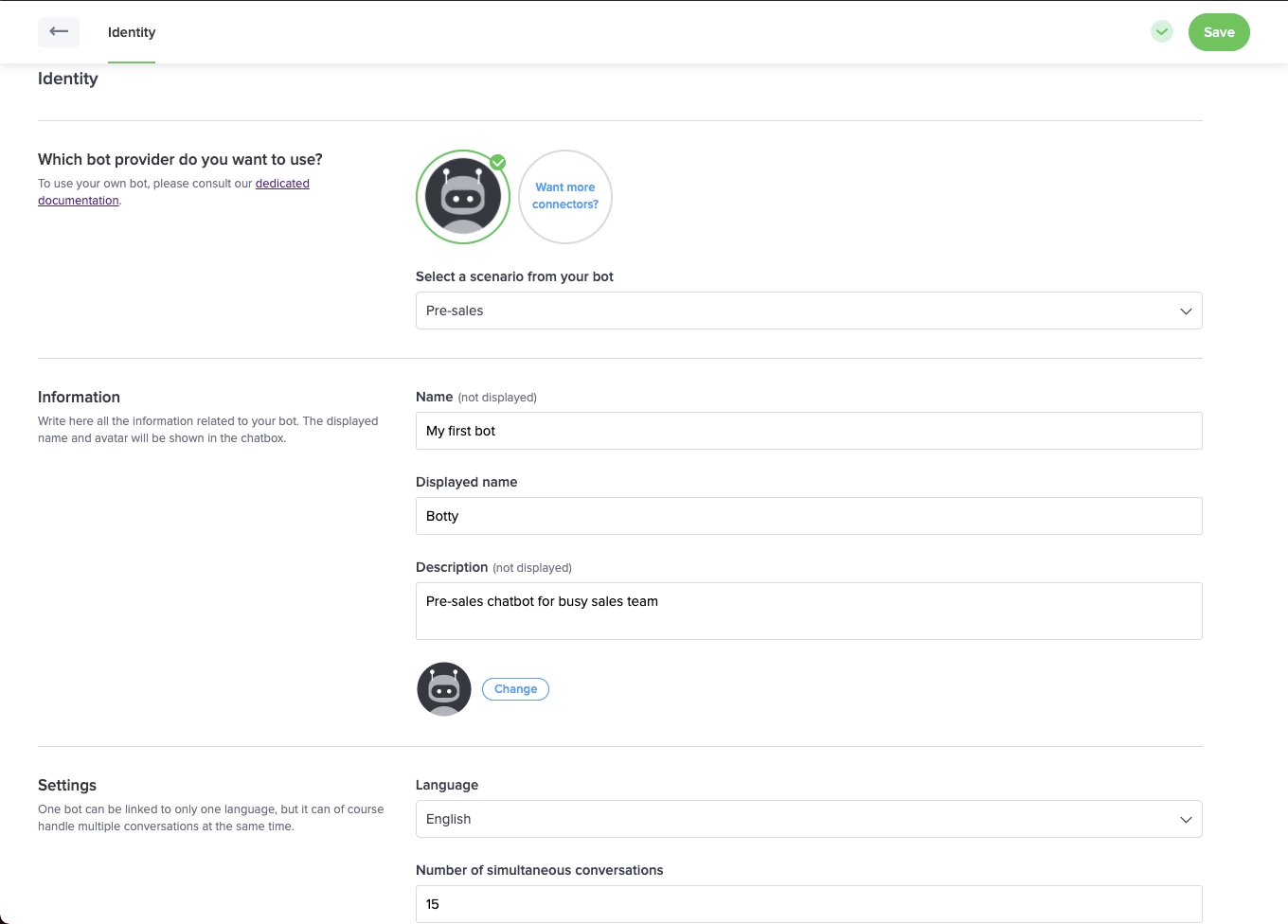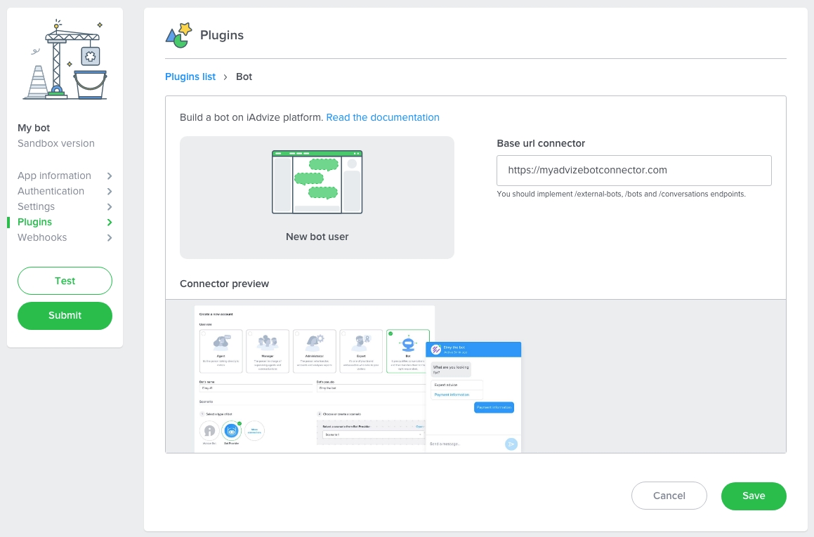 Allows customers to connect their iAdvize account to a bot provider and connect bots seamlessly. These bots interact with iAdvize like a human agent